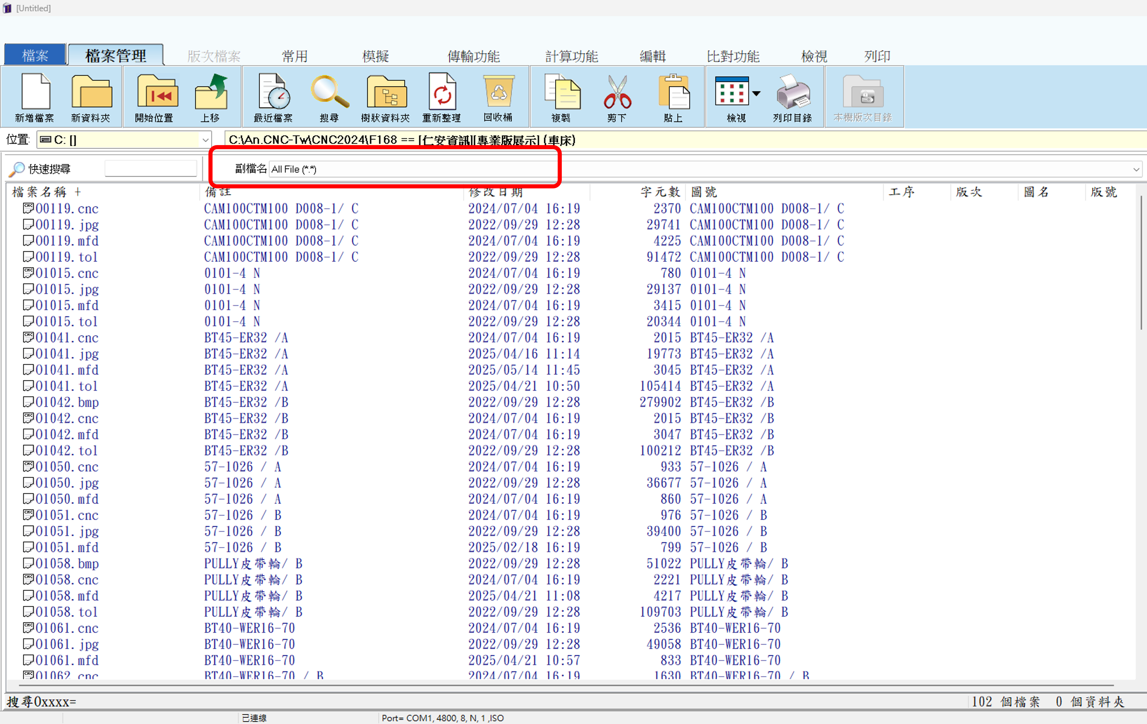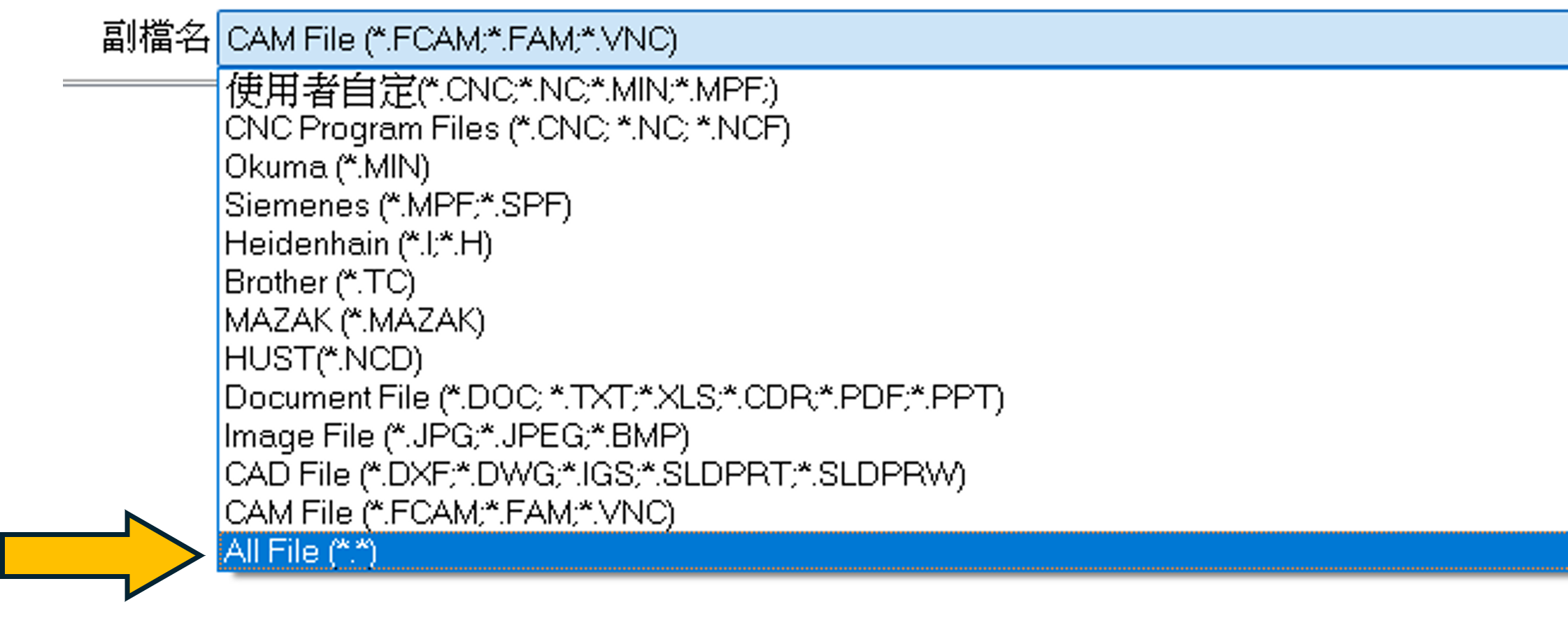 點一下副檔名的地方,會出現下拉式選單,請將類型選擇為 All File