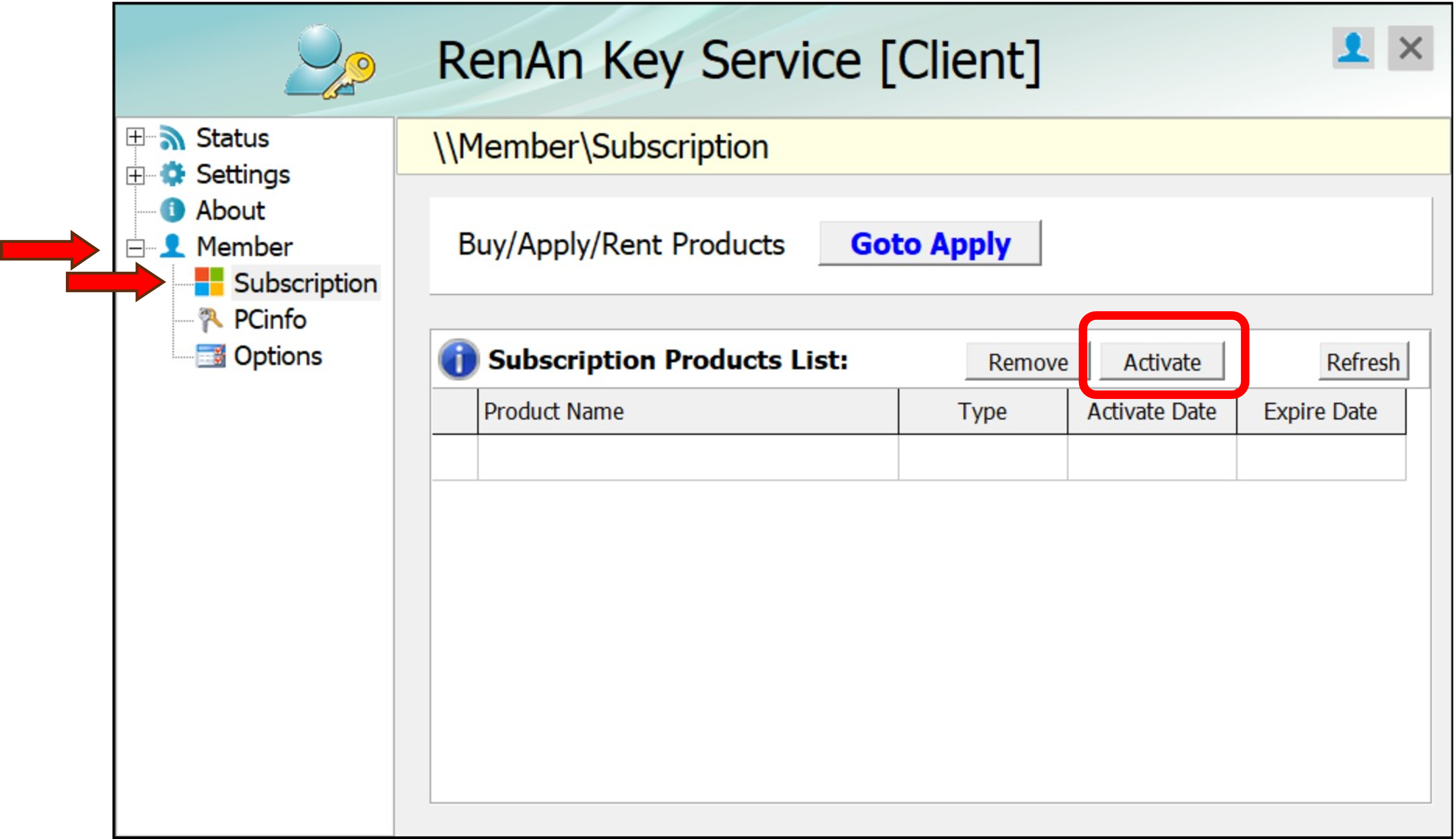 3.1 Member> Subscription > Activate >